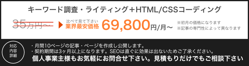 コンテンツの作り方については、上記の特長を踏まえた記事の作成を致します。当社では、SEOの専門知識を持つライターが御社の為にオリジナル記事の作成を致します。記事のボリュームは1記事あたり2,000文字を目安に作成します。